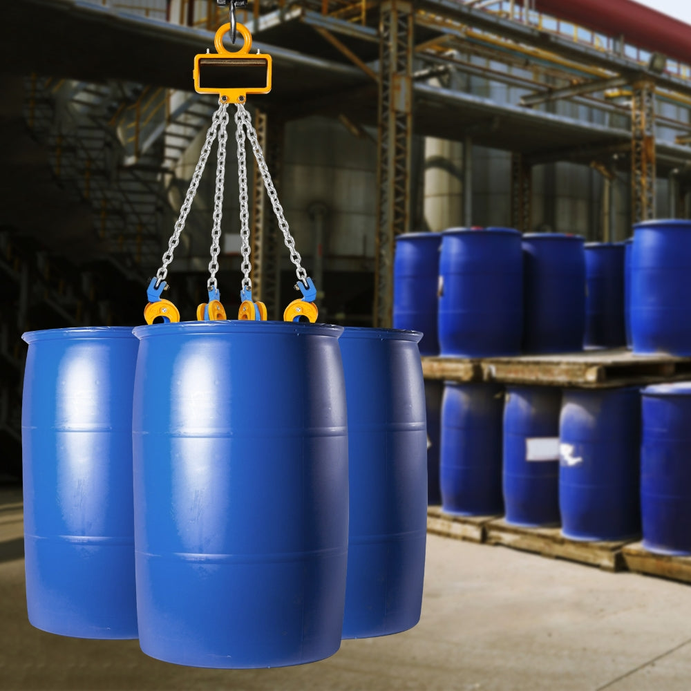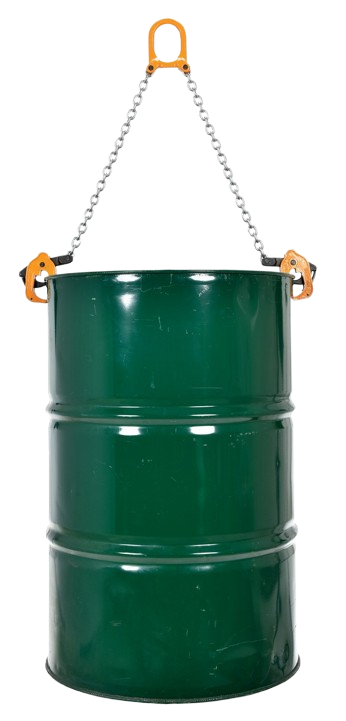 Safely hoists heavy drums with robust, durable chains for secure handling.