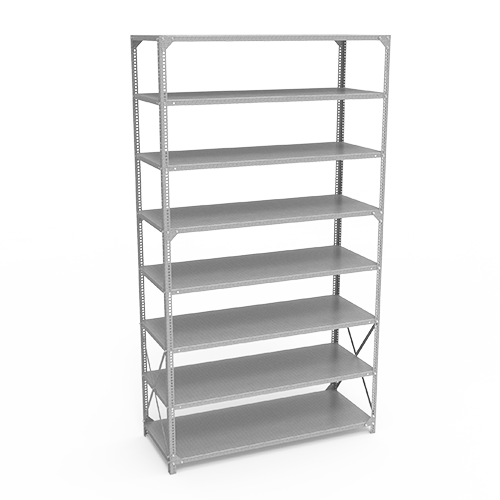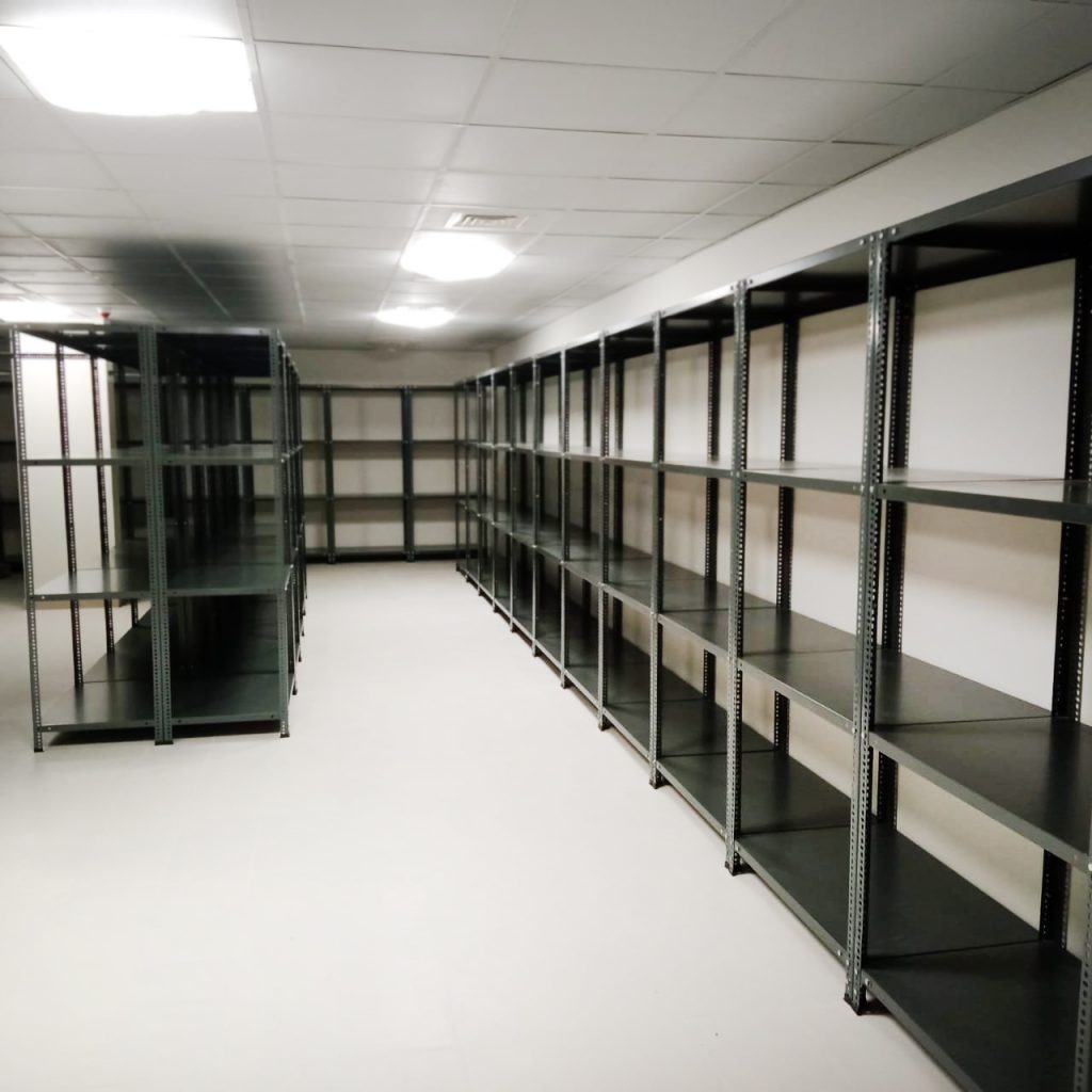 Slotted Angle Shelving offers versatile storage for light to medium-duty applications. It’s a popular solution for offices, stores, and workshops due to its adjustable and reusable design.