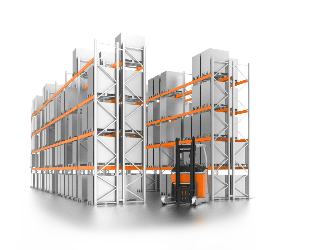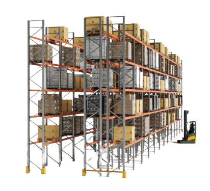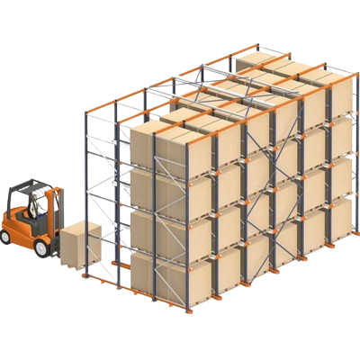 These racks allow forklifts to enter aisles to store or retrieve pallets. Best suited for storing large quantities of similar items using LIFO or FIFO methods.